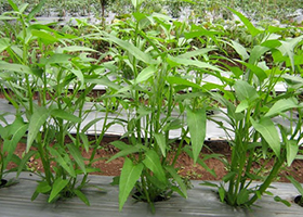Tipe tumbuh tegak, sampi 45 cm, Bentuk daun segi tiga, lebar dengan ujung tumpul, Warna daun hijau keputihan. cukup tahan terhadap penyakit karat daun (Puccinia sp.) dan virus keriting, baik untuk dikembangkan di lahan kering, mulai dapat dipanen pangkas ujung batang 39 (35-45) hari, mulai berbunga 50 hari.